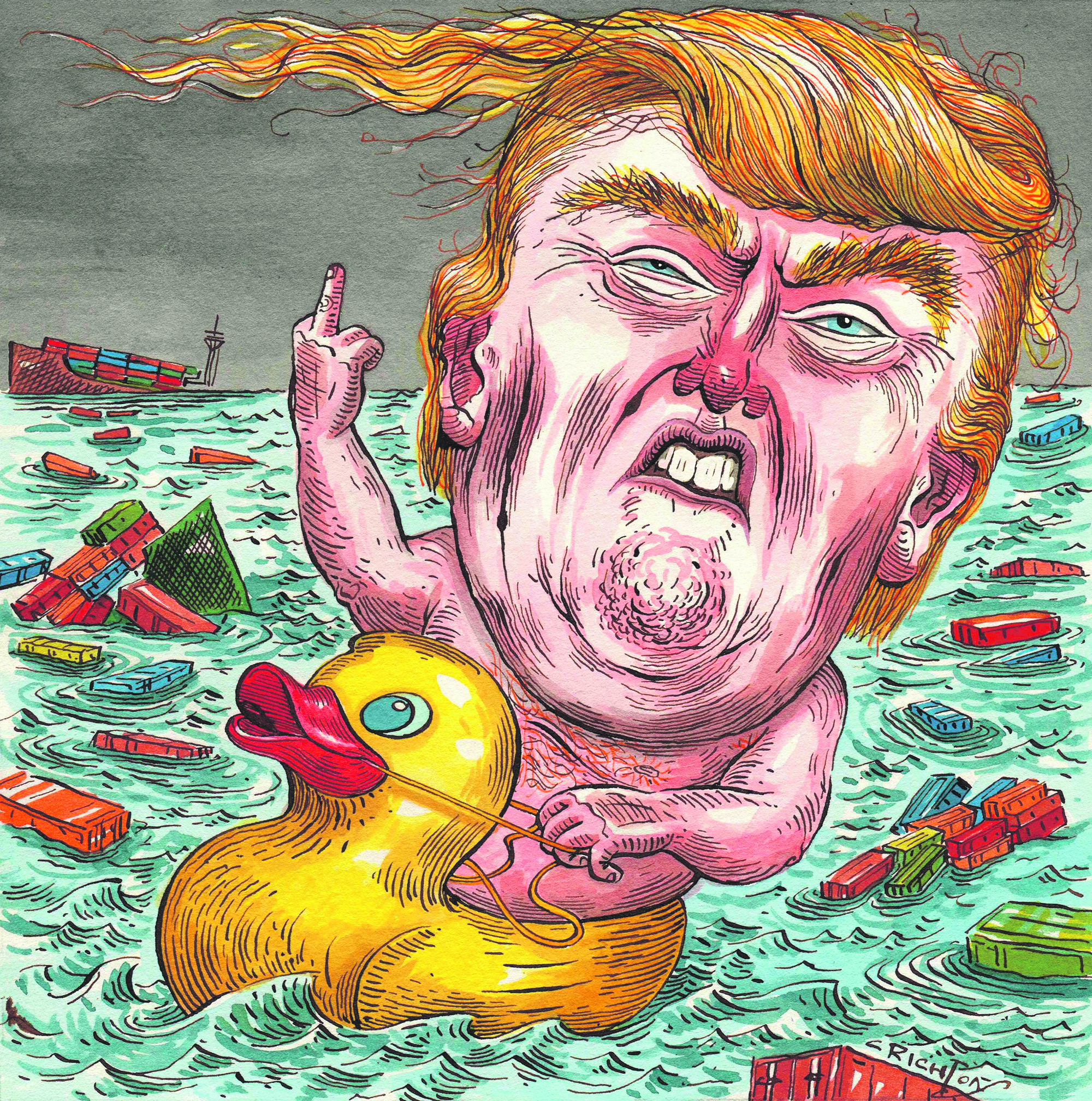 Anna illustrates social commentary with a satirical edge using an old-fashioned dip pen, ink and brush.